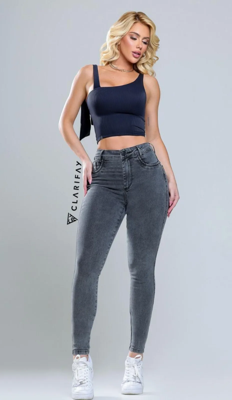 A Calça Catarina destaca-se pelo seu design skinny e cintura alta, proporcionando um ajuste moderno e confortável graças aos 3% de elastano. Ideal para quem busca estilo aliado à praticidade no dia a dia.