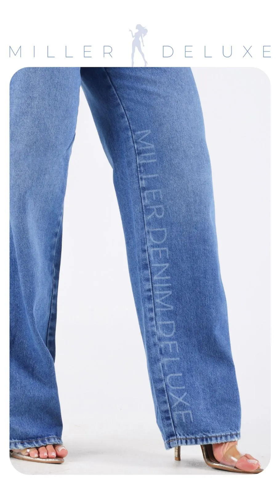 Calça Jeans Wide Leg Azul Médio com Lateral Personalizada – Miller Denim Deluxe