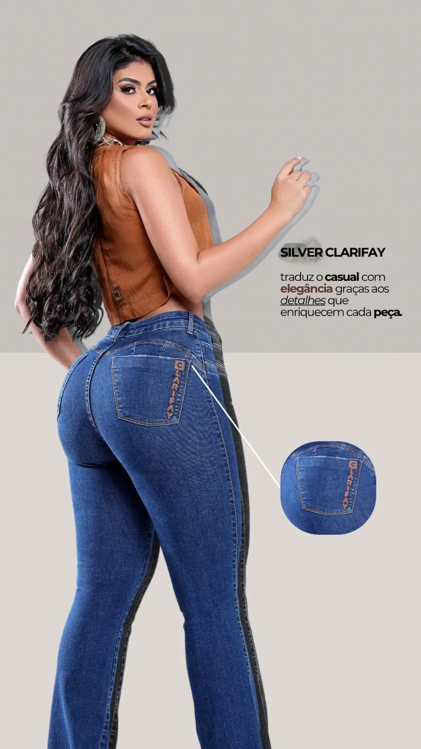 Calça Cecília: Elegância e conforto em jeans flare de cintura alta. Confeccionada 100% em algodão, oferece durabilidade e caimento perfeito para valorizar sua silhueta. Ideal para ocasiões casuais ou ambientes de trabalho, combina facilmente com diversas peças. Invista em estilo e praticidade com a Calça Cecília. Compre agora e experimente a qualidade que faz a diferença.