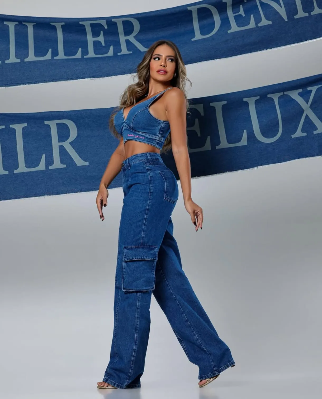 Calça Leandra: Conforto e estilo em jeans premium. Esta calça cargo de modelagem de cintura baixa é confeccionada 100% em algodão, garantindo durabilidade e conforto ao longo do dia. Ideal para ocasiões casuais ou para um visual moderno no trabalho. Invista na Calça Leandra e eleve seu guarda-roupa com praticidade e elegância. Compre agora e sinta a diferença!