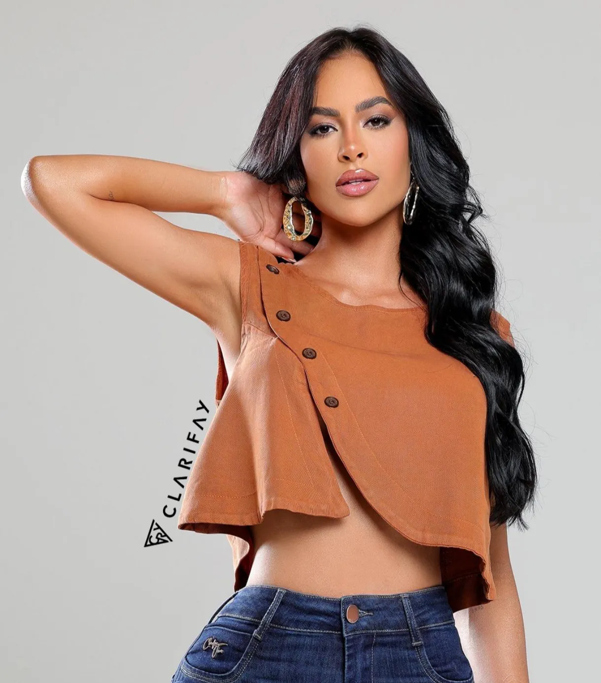 Croped Juli: Elegância e conforto em liocel para seu dia a dia. Confeccionado 100% em liocel, este cropped oferece toque suave e respirabilidade, com detalhes sofisticados em botões e recorte arredondado que valorizam o visual. Ideal para momentos casuais ou ocasiões que pedem um look leve e elegante. Combine com peças básicas para um estilo moderno e confortável. Adquira agora e eleve seu guarda-roupa com qualidade e estilo.