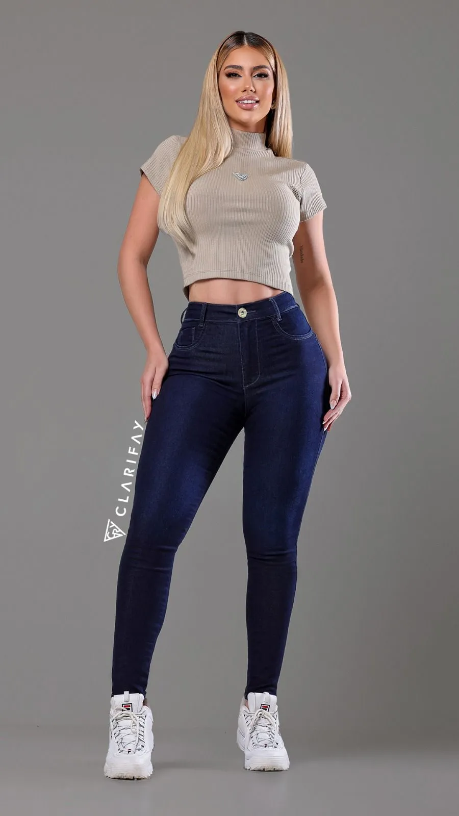 A Calça Cléia oferece modelagem skinny com cintura alta, garantindo um caimento perfeito que valoriza a silhueta feminina. Seu jeans de alta qualidade proporciona conforto e estilo para o dia a dia, com lavagem que exige cuidados especiais para manter a durabilidade da peça.
